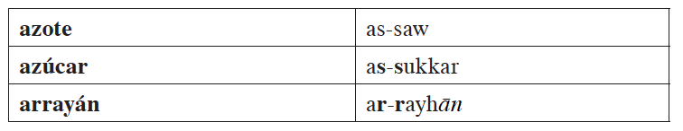 en otros casos dieron como resultados /g/ o /k/: al-?arabiyya > algarbía;