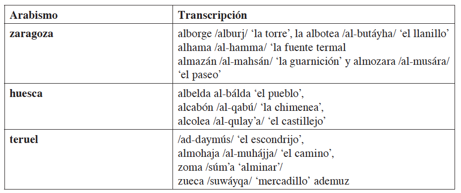 Uno de los aspectos que más facilita el aprendizaje del español y del árabe como segunda lengua, por ser de las mayores presencias de los arabismos en el español, se da a nivel de la toponimia que se refiere al dominio árabe de filiación lingüística en la Península Ibérica. Sobre el tema hay muchos estudios ( Llorente Maldonado de Guevara, 1991, p. 12). Véase Cuadro 22.