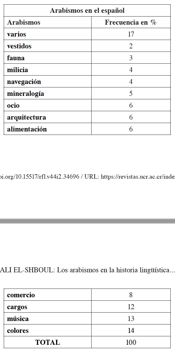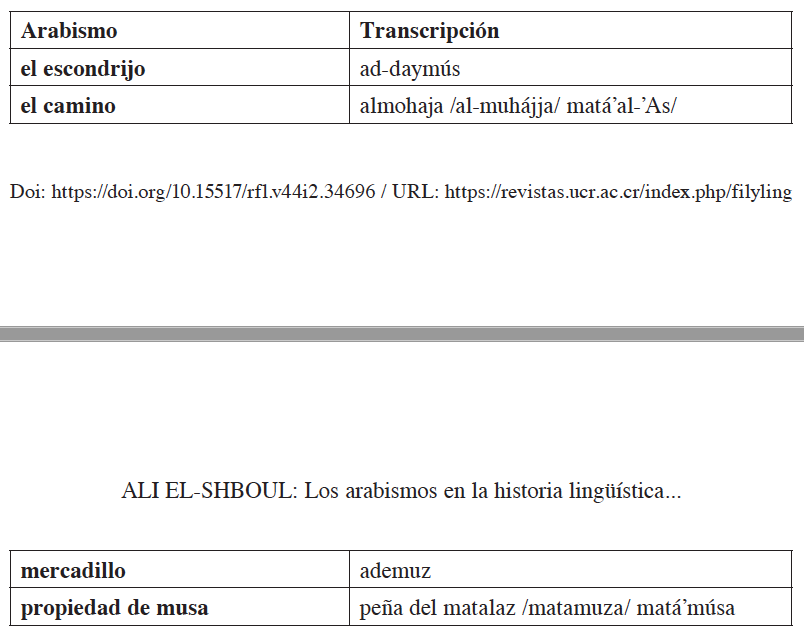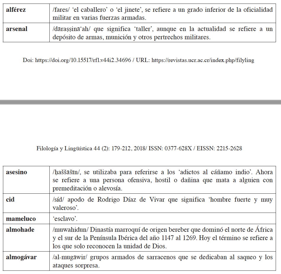Keywords: arabic, spanish, arabisms, linguistic contact, learning.