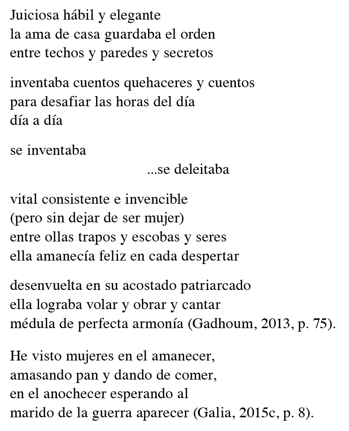 Más que los sujetos líricos afiliados a la causa árabe, estas hablantes líricas feministas-decoloniales se comprometen con la desobediencia epistémica pues saben ?así lo dejan ver los poemas? que para desprenderse de la modernidad / colonialidad es necesario ser epistemológicamente rebelde: saber, hacer y ser en la exterioridad. Tomando algunas palabras de Tamzali (2011) y aplicándolas al caso, podría decirse que la poesía feminista-decolonial hispano-magrebí busca vencer el inmovilismo, los arcaísmos y las supersticiones que han ayudado a sacralizar la moral sexual patriarcal que, hasta hoy, se ha impuesto en el Islam. Esta poesía abandona la pusilanimidad (patriarcal-colonizada) del pensamiento musulmán y deconstruyen tanto la segregación sexual como la relegación de la cuestión de las mujeres musulmanas o su objetualización en los asuntos apremiantes (salud, educación y economía) de la identidad nacional. Esta poesía busca hacer audibles a las mujeres musulmanas en medio de la democracia, libertad e igualdad. Esta poesía trata de oponerse a las asignaciones (religiosas, patriarcales, colonizadas) identitarias de las mujeres musulmanas, y derrocar los modos de dominación de las ideas y los sujetos que vehiculizan la sociedad, moral sexual y colonialidad islámicas, a fin de reivindicarlas, para que finalmente en sus propios países las mujeres musulmanas puedan avanzar.