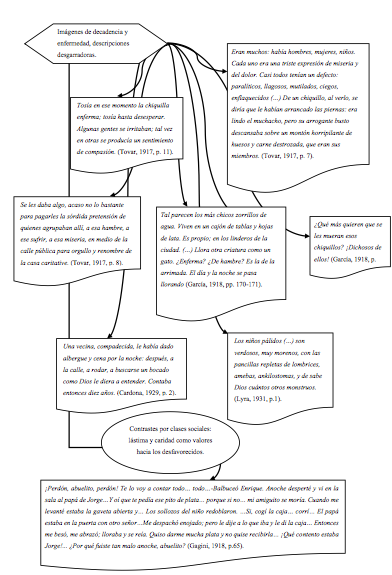 Del mismo modo, la niñez representa calamidad y sufrimiento, aunque en una dimensión más social que la enmarca y en diferentes acepciones. Son voces de dolor que recrudecen las situaciones que viven. Más que su humanidad, pareciera resaltar su carácter ominoso (Chaves, 2016). Al respecto, Jenks (1996) afirma que la infancia ha sido representada teleológicamente y se ha utilizado de forma sistemática como parámetro para determinar la evolución social a través de los grupos más vulnerables. En el contexto nacional, la llegada de la Generación del Repertorio Americano mostró un particular interés en descubrir las vivencias de individuos marginados y expuestos a situaciones adversas. El principio del siglo XX muestra una transición en el espacio literario del país, cuando se comienza un enfoque hacia los conflictos sociales y las situaciones vividas por grupos menos protegidos, como denuncia social (Brenes, 2007 y 2010), entre los cuales se encuentra la niñez. Esto respalda la aparición en las obras de temas cómo el desamparo, el hambre, la marginalización, la desintegración familiar, la enfermedad y la pobreza, ya que son parte de los aspectos de la sociedad que se querían reflejar y poner en evidencia. La niñez, sobre todo la femenina, más que una por y para sí misma, se ofrece como fuente de imágenes para ilustrar esta denuncia. Sin embargo, es una denuncia lastimera, sentimentaloide, ahistórica y acrítica de las condiciones de una niñez en desventaja social que en ningún momento considera la condición ni las desigualdades de género.