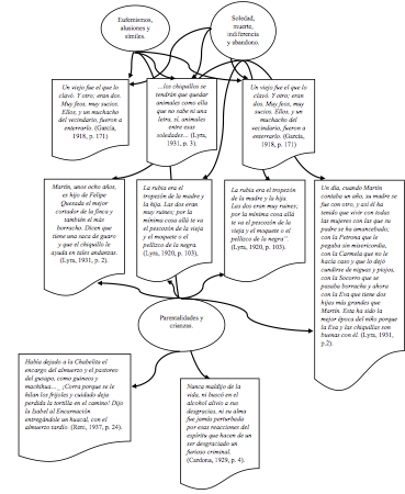 En el Gráfico 3, llaman la atención las alusiones animalescas, la ominosa sociedad se pone de relieve en las narraciones de la niñez, mostrada también como crianzas severas y el peso que representaba la niñez para sus progenitores, sobre todo la madre.