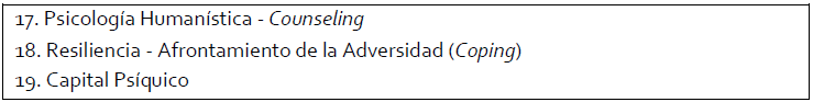Asimismo, dentro de las temáticas más abordadas en los cursos se encuentran la resiliencia, el afrontamiento de la adversidad y el estudio del bienestar (tanto desde la concepción hedonista como eudaimónica); estos constructos también se encuentran entre los más investigados en los países de la región.