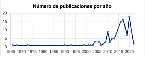 Si bien existieron algunas propuestas en los años 90, el apogeo de esta tecnología se produce desde el año 2010 hasta la fecha. A su vez, como era de esperar, en el año 2021 se produce un crecimiento de los artículos publicados, lo que puede deberse a la pandemia Covid-19 y el confinamiento, pues investigaciones anteriores han establecido una relación entre la producción científica y el confinamiento, precisando que durante este periodo aumentó significativamente la producción (Perdomo, 2021). A su vez, la investigación, en dicho periodo, se centró más en los recursos digitales y tecnologías empleadas durante el proceso de enseñanza-aprendizaje, favoreciendo el aumento mencionado.