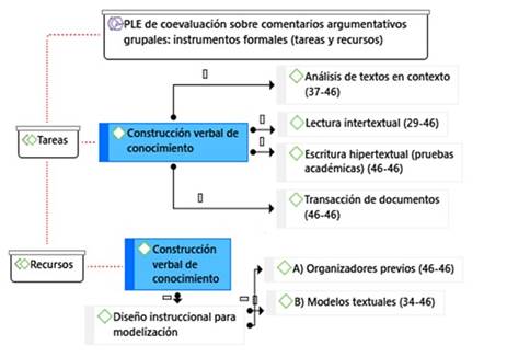Previamente, para educar en confección y coevaluación de comentarios argumentativos grupales, se les instruyó en competencias básicas en escritura (Álvarez Angulo, 2010), como elaboración de borradores, esquemas-guía y monitorización revisora de perfilamiento textual en retroalimentación con procesos lectores de investigación e interpretación epistémicas.