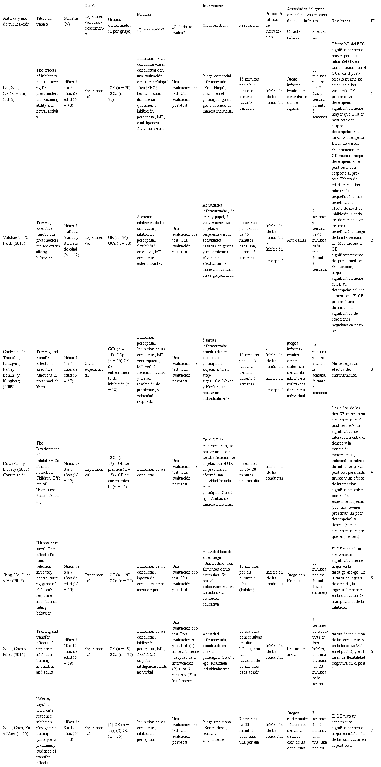 Definiciones y métodos de entrenamiento de la inhibición en la niñez, desde una perspectiva neuropsicológica. Una revisión sistemática