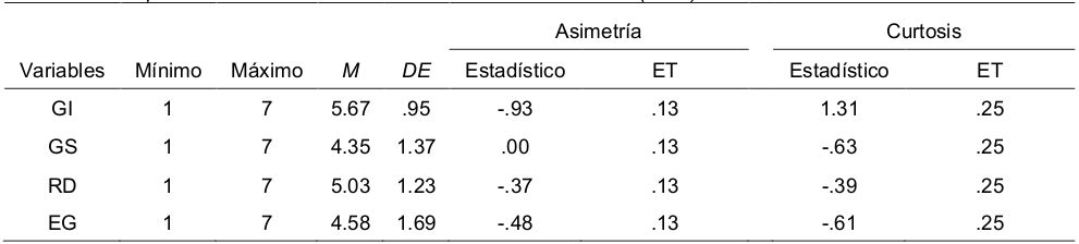 GI = gratitud interpersonal; GS = gratitud ante el sufrimiento; RD = reconocimiento de dones; EG = expresión de gratitud.