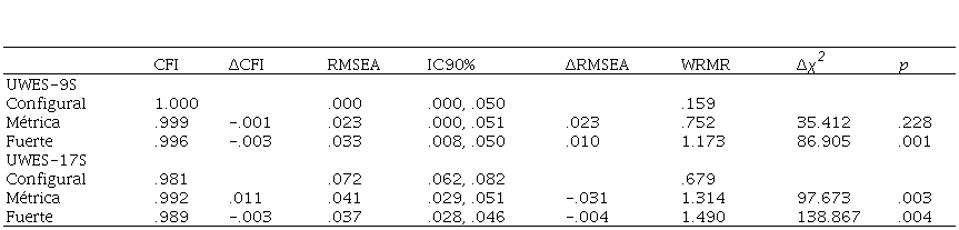 Evidencias de validez de la estructura interna de la UWES-17S y UWES-9S en hombres y mujeres