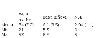 Como se puede observar en la tabla el NSE medio de las familias que participaron es de 2.94, este valor es acorde a lo esperado considerando que el jardín de infantes al que las familias envían a sus hijos pertenece al quintil 3 (se le recuerda al lector que un NSE de 1 equivale a aquellas familias en situación de pobreza extrema, mientras que un nivel 5 refiere a las familias en una posición económica muy favorable).