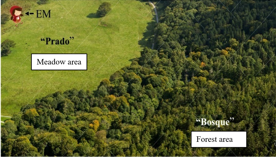 Little Red Riding Hood is going to visit her grandmother and decides to go through the forest, not knowing that the wolf is lurking there for her. Your job is to find Little Red Riding Hood and save her from the wolf. A message will appear on the screen stating that Little Red Riding Hood has stopped somewhere in the forest, so you must place the mouse cursor and click where you think she is. If you have any questions, this is the time for you to ask them because once the session has started, the researcher will not be able to talk to you. To start press "CONTINUE".