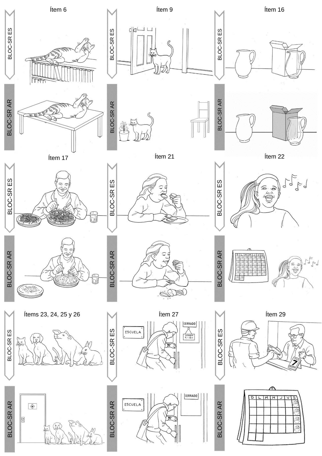 El objetivo principal del presente trabajo fue adaptar los módulos de semántica y pragmática de la BLOC-SR al contexto cultural y lingüístico de Argentina. Como explican Aguirre Camacho y Duharte Peredo (2019), los trabajos de adaptación de instrumentos deben anticipar, evidenciar y solucionar inconvenientes que puedan surgir durante la aplicación del instrumento por diferencias culturales o lingüísticas entre las poblaciones meta y fuente, considerando el procedimiento y la modalidad de aplicación, las consignas, los tipos de estímulos y el contenido de la prueba y las formas de respuestas esperadas.