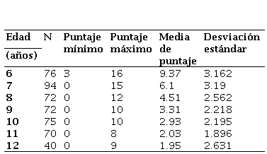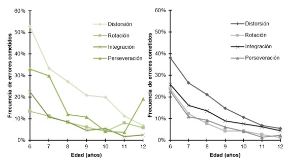 Al analizar los datos de Carreras y Uriel (2011), quienes estudiaron una muestra de 785 niños y niñas, se observó, nuevamente, que la categoría de distorsión fue la de mayor variación con la edad cronológica.