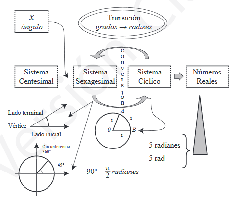 En relación a las funciones trigonométricas (FF. TT.) Algunas investigaciones (Maldonado, 2005; Méndez, 2008) han mostrado la existencia de fenómenos didácticos que pueden ser interpretados como interpretados como consecuencia directa de la existencia de conceptos articuladores en corpus de la matemática escolar. En particular el concepto de radián, en el marco de la matemática escolar, puede ser interpretado como un concepto articulador, debido a que su función es la de proporcionar una articulación entre la Trigonometría, que utiliza el grado como unidad de medida angular y al ángulo como argumento funcional de las razones y de las FF. TT., y el Cálculo diferencial, que incluye a las FF. TT. como parte de su sistema como funciones reales de variable real1. En el sistema educativo mexicano el concepto de radián aparece por primera vez en el nivel medio superior.