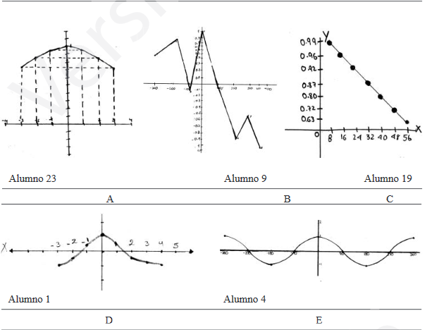 Dos estudiantes presentaron curvas senosoidales sin justificar su proceso de construcción (TABLA VII–E).