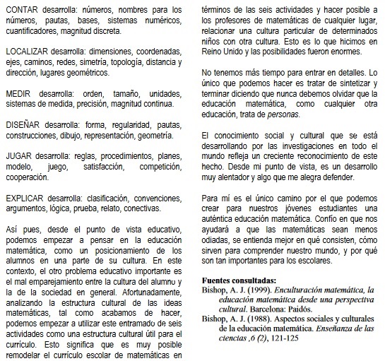 Oliveras, M. L. (2006). Etnomatemáticas de la multiculturalidad al mestizaje. En J. Goñi (Ed.), Matemáticas e interculturalidad (pp.117-149). Barcelona, España: Grao.