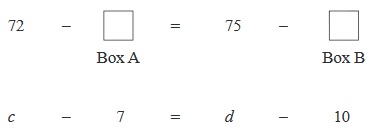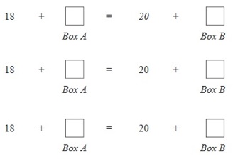 Non-directed relationships take a different form when students simply refer to the difference between the numbers in Box A and Box B, or between c and d. This was most evident in responses to part e questions for Addition and Subtraction, where students correctly draw attention to the difference between c and d [8 in the case of addition and 3 in the case of subtraction] without saying which is larger or smaller. In responses from students in other countries, it is relatively common for students to answer question 2b (Addition) by saying ''Difference of 2'', or to question 4b (subtraction) by saying ''Difference of 3''. This form of incomplete justification may be a carry-over from the way students have been accustomed to talk about relationships between counting numbers. Given two numbers, such as 18 and 20, or 72 and 75, it is permissible to talk about a difference of 2 or 3 as the case may be, because it is clear what two numbers are being referred to, and which one is greater. Of course, it is also correct to say that 18 is two less than 20, or that 20 is two more than 18 - with similar statements describing the relationships between 72 and 75. However, when dealing with Box A and Box B number sentences, and with sentences involving c and d, students may not be aware that only the latter type of sentences can be used, because they are the only ones that make it clear which (variable) numbers are being referred to and which is greater.