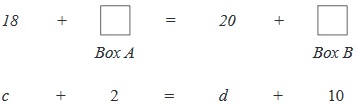 On the other hand, some students who successfully described the relationships between c and d in part e, and having given a complete relational description to parts b and c, were not able to describe how any number could be used in Box A and still have a true number sentence. This suggests that framing a generalisation in part d may be more difficult for some students than generalising the relationship between c and d.