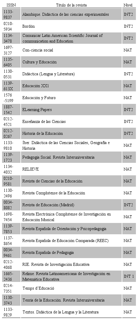 Con el ánimo de analizar la presencia en las bases citadas, mostramos a continuación el listado de revistas españolas y Latinoamericanas incluidas en la base ERIH en la categoría disciplinar Pedagogical and Education Research. Sin embargo, como se verá, la presencia de estas revistas sigue siendo muy escasa.