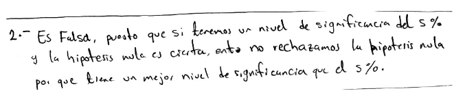 En cuanto al nivel de significancia, los estudiantes lo utilizaron en su mayoría en forma adecuada en los procesos de prueba de hipótesis como elemento de decisión para rechazar o no rechazar la prueba, pero fallaron notablemente en el ítem 2 donde se solicitaba su comprensión. Un ejemplo de razonamiento incorrecto lo mostramos a continuación:
