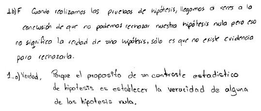 Un contraste estadístico de hipótesis, correctamente realizado, establece la verdad de una de las dos hipótesis nula o alternativa. Justifica tu respuesta. V/ F