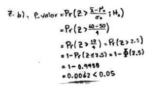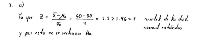 Por ejemplo, en el ítem 7, un estudiante calcula el estadístico de prueba correctamente pero no tiene claro el criterio de decisión y decide incorrectamente no rechazar la hipótesis nula a pesar de que el estadístico de prueba cae en la región de rechazo.