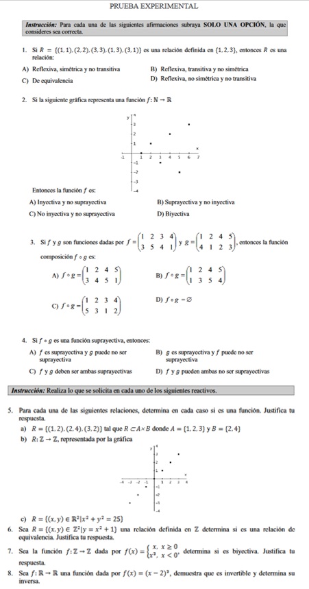 7. Para cada una de las siguientes fundones escribe si es o no inyectiva, suprayectiva, invertible:
