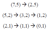 podemos concluir que la antifairesis de 7 y 5 será la sucesión {1,2,2}; como de hecho se comprueba mediante la siguiente serie de restas realizadas mediante el procedimiento anterior: