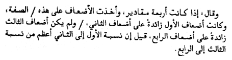 “Hemos así demostrado que […] cada vez que una razón es más grande según la razón usual, será también más grande según la razón verdadera, y lo mismo si es más pequeña; y a la inversa, que cada vez que una razón es más grande según la razón verdadera, será también una razón más grande según la razón usual, y lo mismo si es más pequeña. Y todo […] lo que Euclides mencionó […] durante […] su quinto libro […] será parte de las consecuencias necesarias de la razón verdadera.”
