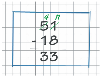 Es posible observar cómo el alumno al ver que no es posible realizar la resta entre 1 y 8, aplica la operación de reserva: le pide prestado un 1 al 5 realizando una transformación de los operandos (en verde). Con lo anterior, el 5 queda temporalmente como 4 y el 1 queda temporalmente como 11.