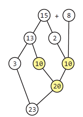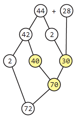 Imaginemos que tenemos dos grupos de bloques cúbicos dispuestos en forma de torres y deseamos saber cuántos bloques tenemos en total, sabiendo cuántos bloques constituyen cada torre. Podríamos juntar los bloques de ambas torres y luego contarlos o bien contar sucesivamente los bloques de una torre a partir de la cantidad de bloques de la otra. Pero también podemos “trasvasijar” algunos bloques de una torre a otra, antes de juntarlas. Esto claramente no cambia el número total de bloques pero puede producir una torre con un número de bloques muy fácil de manipular, una cantidad exacta de decenas, por ejemplo.