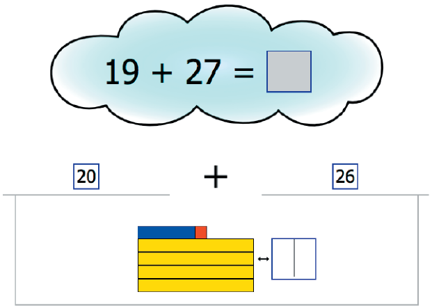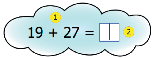 Calcula mentalmente 27 + 19 sumando 7 + 9, como 8 + 8 = 16, “reservando” 1 y luego sumando 2 + 1 = 3, más 1, igual 4, es decir: 46.