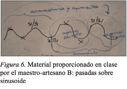 El nivel simple es reconocido por los tres artesanos y suele emplearse para evaluar si la realización del objeto finalizado es exitosa. El nivel complejo se atribuye al maestro-artesano C (Figura 3): en la entrevista declara que las mismas pasadas te van cantando por dónde ir; es decir, la realización, procede según cómo va quedando y cómo tiene que quedar.