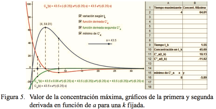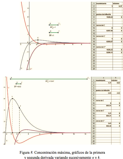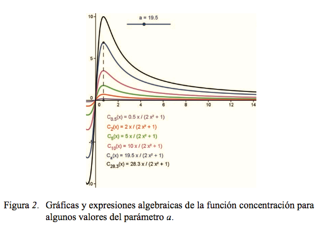 Para determinar el valor de la concentración máxima en función de a pueden utilizarse técnicas gráficas o algebraicas con el GeoGebra: