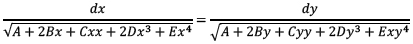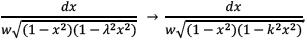 Luego de mostrar que las potencias impares del radical se pueden omitir sin pérdida de generalidad, Legendre (1825) encuentra que la parte transcendente (ni circular ni logarítmica, puesto que estos casos son conocidos) de una integral elíptica tiene la forma