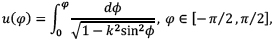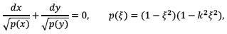donde k denota el módulo jacobiano de la integral. Con estas útiles, aunque algo tramposas desde el punto de vista de la historia, simplificaciones se encuentra la solución general