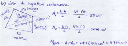 b) Determina el área de superficie contaminada. Usa aquellos instrumentos y conocimientos que estimes necesarios o convenientes .