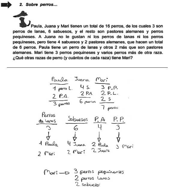 Mathematical problems: Students completed two relatively complex mathematical word problems taken from the book “ Problem - solving and comprehension ” (Whimbey & Lochhead, 1999) published in Spanish. This book provides a systematic review of the characteristics that define a good problem solver, while proposing strategies and activities to develop these skills, mainly based on mathematical reasoning. Tasks differ in the amount of information to be processed, the number of associations presented and the number of parameters to calculate.