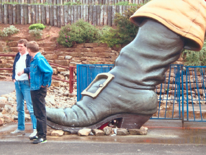 Isolement sur la photo la chaussure du géant par sa double pertinence :