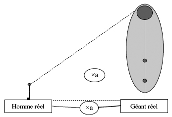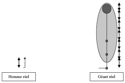 Neh, Ass, Ber et Don prennent en compte un élément extérieur au géant (un des hommes de la photo), estiment sa taille réelle et la mettent en rapport avec celle du géant (référentiel empirique ou théorique)