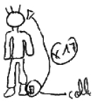 Théorème en actes : la « taille » est égale à la somme de certains segments du corps (pieds, jambes, bras) ; le changement d’échelle d’une feuille de papier au réel se fait en substituant les mètres aux centimètres