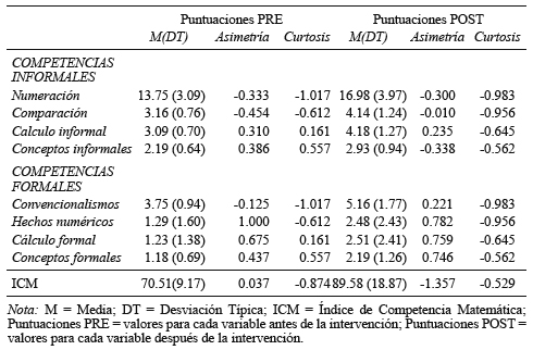 Finalmente, en relación a las competencias formales, los ANCOVA (tomando como covariadas el CI, la edad, el género y la puntuación pretest) no aportaron diferencias estadísticamente significativos en las variables convencionalismos ; hechos numéricos ; cálculo formal ; y conceptos formales .