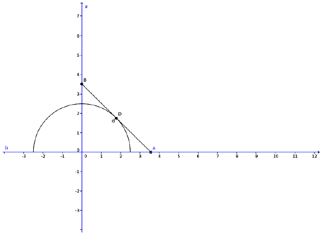 Problems that, in order to be treated with GeoGebra, must be translated into a functional model, although they are not originally expressed in these terms. This functional approach is necessary to use a DGS to solve the problem. In this case, if you want a student to solve the problem, you must give clues for instrumental deconstruction and non - iconic visualization. Problems of this type are problems 2, 4, 5 and 6. In this type of problems, we usually need to use auxiliary objects, sometimes for mathematical reasons, and sometimes for technical reasons (due to the characteristics of GeoGebra).