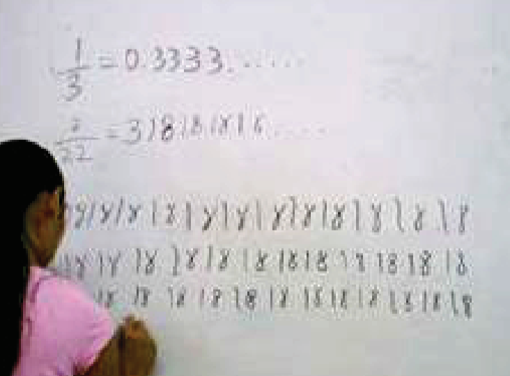 Si bien la periodicidad es una propiedad que caracteriza un comportamiento repetitivo, ese comportamiento no sólo se refiere a que algo se repite, sino que importa reconocer cómo se repite. La figura 2 es una ilustración de cómo, aunque se evidencia la repetición en el decimal periódico 7 / 22 para hallar la cifra 120, el carácter periódico simplemente no es visible, por lo tanto, no se aprovecha, no se usa. Importa pues reconocer significativamente el cambio y cómo cambia el cambio.