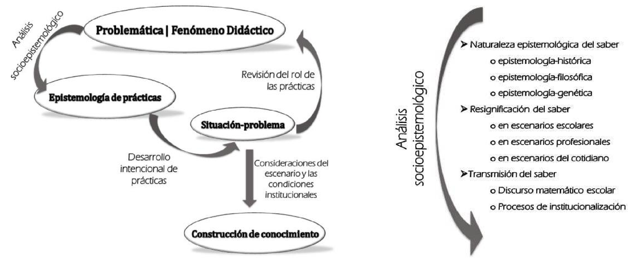La propuesta socioepistemológica considera el permanente desarrollo del pensamiento matemático a través de prácticas, y así toda forma de saber -culto, tradicional, escolar, extra - escolar - importa. Se posiciona a las prácticas en el centro de la explicación didáctica debido a su rol en la generación del conocimiento matemático. No niega al objeto matemático ni la importancia de su adquisición -como la definición de la periodicidad en términos de una igualdad- sino que lo quita como centro y, por lo tanto, como el único fin de la enseñanza. Resulta necesario considerar otros escenarios como el social, cultural, histórico o institucional, y en cada uno de ellos, al hombre que hace matemáticas en contraposición a sólo considerar la producción matemática final lograda (Cantoral, Montiel y Reyes-Gasperini, 2014; Buendía, 2010).