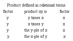 Multiplication can be expressed by the words “multiplied by” or “times” (the corresponding Spanish words are “por” and “veces” respectively). An algebraic expression of a product c is . This can be read as a times b or b times a equals c. Likewise, it can be transcribed as the product c results from taking a times the number b or taking b times the number a. In a similar way children can say that a product results from adding a number to itself a particular number of times.