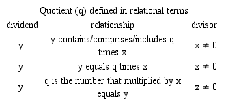 Our approach probably allows elementary school children to construct a system of numbers such that multiplication and division, products and quotients, are defined by every number comprised in the system. At the elementary school level, that system corresponds to rational numbers, ℚ. Within that system, every number can be expressed as the product or quotient of, at least, two other numbers. That is, every two numbers of the system can be related according to the definitions of multiplication and division to a number termed product or quotient. For example, 15 can be represented as the product of one-half times ten, or the quotient of five divided by one third, i.e. the number that that multiplied by one third equals five.