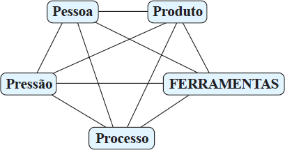 A letra F, de ferramentas, significa que os recursos e métodos são utilizados para associar os quatro Ps, sendo essas, capazes de associar os processos divergente (produção de um conjunto de opções) e convergente (avaliação e julgamento dessas opções).