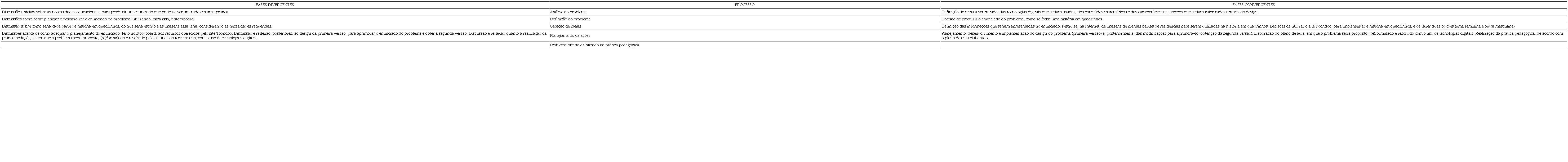 Para analisar os dados, considerou -se o problema e objetivo de investigação, o referencial teórico construído e as fases analíticas e suas interações, que são mencionadas Yin (2016): compilação, em que são reunidos e organizados os dados coletados; decomposição, que esses são fragmentados ou separados em grupos menores; recomposição, cujos fragmentos ou elementos são reorganizados, em grupos e sequências diferenciadas da organização original, podendo ser alterados, quando houver a necessidade; interpretação, que seria a utilização dos dados recompostos para produzir narrativas, tabelas e gráficos (se forem necessários), para determinar as interpretações iniciais; e conclusão, em que são utilizadas as interpretações da quarta fase e retiradas as conclusões da investigação. Desse forma, entre a primeira e a quarta fases, foi possível identificar as categorias de análise: design de enunciados de problemas abertos e que abordam temas de relevância social, com o uso de tecnologias digitais, para propiciar a (re)formulação e resolução desses problemas, com tais recursos; discussão, investigação e reflexão sobre o design dos problemas e os resultados da prática pedagógica que planejarem e realizaram, em que a (re)formulação e resolução com o uso de tecnologias digitais foi realizada pelos alunos do Ensino Médio; conhecimentos matemáticos, metodológicos, tecnológicos e acerca da abordagem de temas de relevância social produzidos e as competências e habilidades profissionais apresentadas e/ou desenvolvidas.