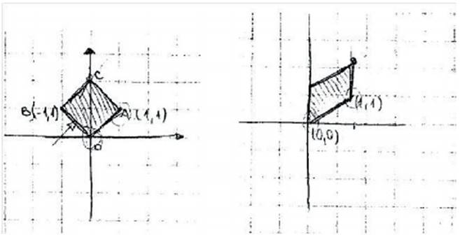 Esta situación está destinada para saber cuáles son las competencias de los estudiantes cuando ellos manejan la definición formal de la noción transformación lineal. La explicitación formal es impuesta por el cálculo de integrales definidas cuyas primitivas no pueden ser expresadas como funciones elementales y por el cálculo de áreas de regiones acotadas.