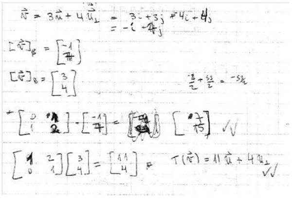 Por otro lado, comprobamos sin sorpresa el enfoque procesal del equipo con dificultad que se limita en su trabajo a la búsqueda fórmulas conocidas para aplicar a nivel de las coordenadas, evitando así las combinaciones lineales vectoriales.